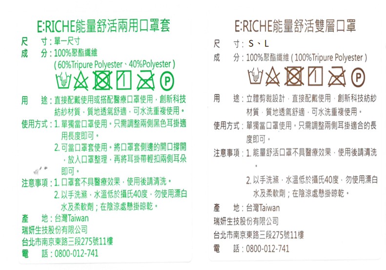 立體剪裁設計,直接配戴使用,創新科技紡紗材質,質地透氣舒適,可水洗重複使用。
